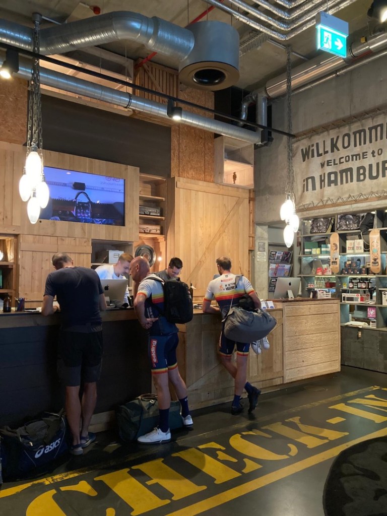 Heiligenhafen – 25 augustus 2022. Na een heerlijke regendouche in ons hotel te hebben genomen, schuiven we aan bij het ontbijt. We nemen het ervan hier bij 25Hours. Uitgebreid vullen we onze magen. Dat is ook nodig met 118 kilometer voor de boeg. We pakken nog wat chocoladecroissantjes voor onderweg en snellen dan naar onze kamers om de tanden te poetsen. Dan snel uitchecken en op naar Ahrensburg. Want daar worden we 9:30u verwacht bij edding.