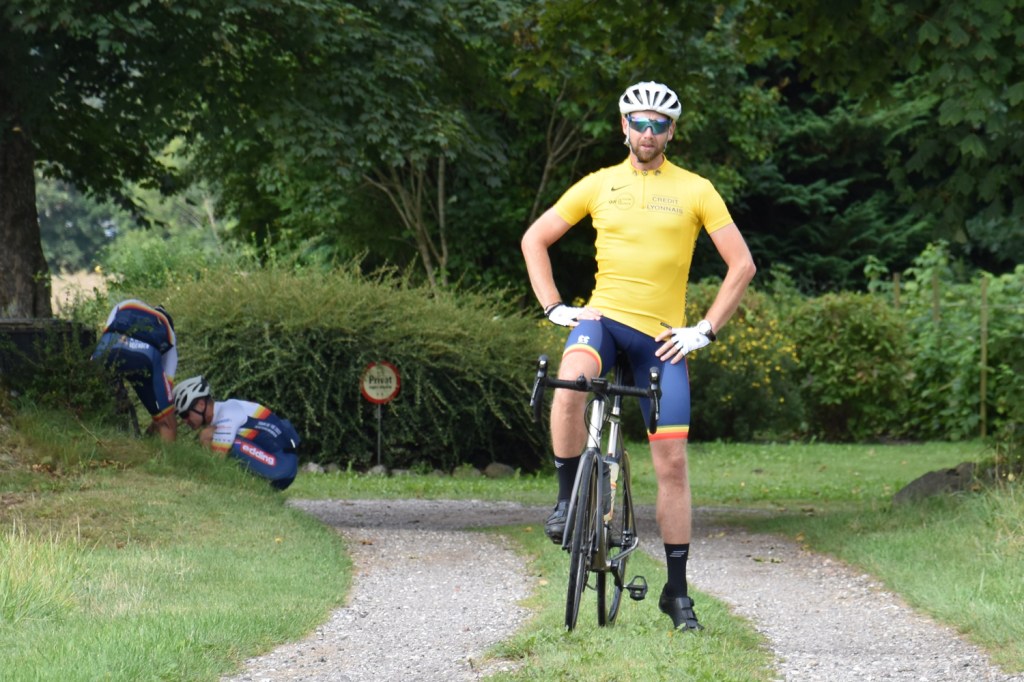 Een kleine 5 kilometer voor de badplaats Solrød Strand demareert gangmaker Arjan met een snelheid van boven de 60 kilometer uit de kopgroep en neemt een kleine voorsprong op de andere renners. Hiermee pakt hij de nodige bonificatiepunten. De renner uit Lelystad heeft zijn gele trui de danken aan Jaap. Met hem in zijn gedachten vliegt hij over het glooiende Deense landschap. “Jaap bleek in 2012 nog wel een fietstruitje te hebben. Ik weet niet meer of hij die mee uit Zweden heeft meegenomen of dat die nog bij familie in Nederland lag, maar ik kreeg die trui, een heuse Gele Trui van Nike. Best een prima truitje”. We deden hier al eerder verslag van in de blog ‘De gele trui en Abba‘. Ga die vooral ook lezen. Net als Robert en Richard rijdt Arjan de Tour De TBE om de gedachte aan Jaap hoog te houden.