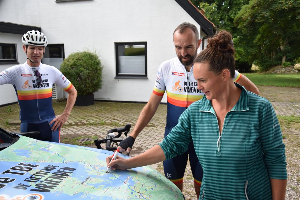 De etappe van vandaag brengt ons van Tappernøje naar Helsingør. Honderdvijfentwintig kilometers door het land waar eerder dit jaar de tourkaravaan doorheen raasde. Met 470 hoogtemeters en 530 laagtemeters eindigen we 60 meter lager dan gestart. Daar hoef je geen groot wiskundige voor te zijn. Volgens de renners en kenners wordt het vandaag toch een redelijk vlakke rit. Arjan van Egmond staat inmiddels klaar bij de startlijn, terwijl de andere fietsers nog druk in de weer zijn om de spreekwoordelijke puntjes op de i te zetten.
