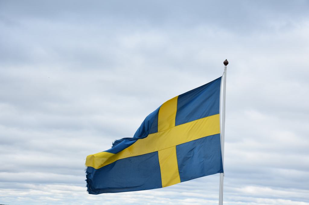 Een nieuw land, dus even op de foto bij het landenbord van Zweden. Uhhh, waar is dat bord dan? We weten dat we er zijn om dat de vriendelijke douanebeamtes ons erin wuifde, zonder dat we onze paspoorten hoefden te laten zien. Maar niets te zien van “Välkommen till Sverige”. Dus de eerste de beste vlaggenmast opgezocht waarin trots een Zweedse vlag wapperde. Hier konden de fietsen van de auto af en de mannen hun fietstocht voorzetten. Maar eerst nog even naar het vogeltje kijken: