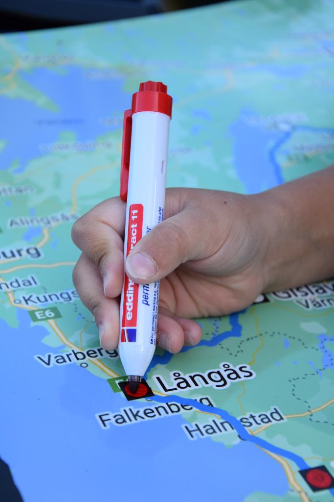 “Hoi Age, mag ik straks met de rode stift het rondje bij Långås inkleuren”. Het is een dolenthousiaste Gijs, de zoon van onze hosts Maaike en Cees.