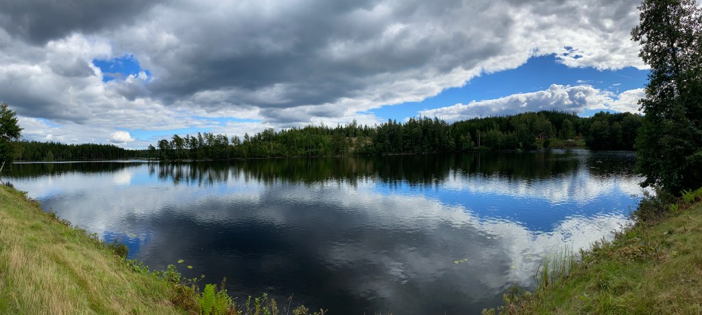 Wel prettig dat de fietsroute van Långås naar Gislaved dwars door een merengebied heen gaat…