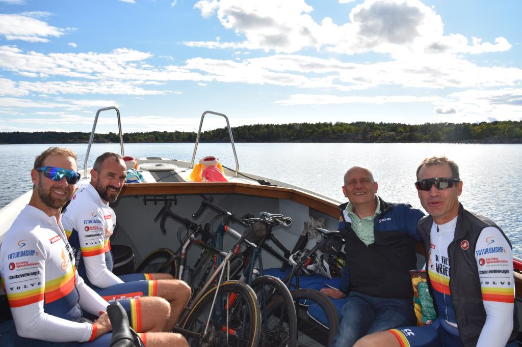 Hoe cool is dit! De Fietsende Vrienden staan gewoon in een Zweedse krant. Weliswaar in een lokale, maar dat mag de pret niet drukken. Een aardige vrouw die naast ons zit vertaalt het artikel voor ons terwijl ze het voorleest. Wij vinden het een goed geschreven stuk en bedanken de vrouw. Mocht jouw Zweeds niet zo goed zijn als dat van deze vrouw, dan kun je bijvoorbeeld Deepl gebruiken om het te laten vertalen. Ondertussen zetten wij snel koers richting Sävö eiland.