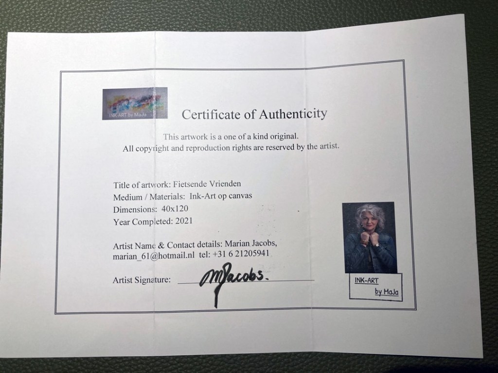 EXTRA: Het schilderij wordt geleverd met een ‘Certificate of Authenticity’