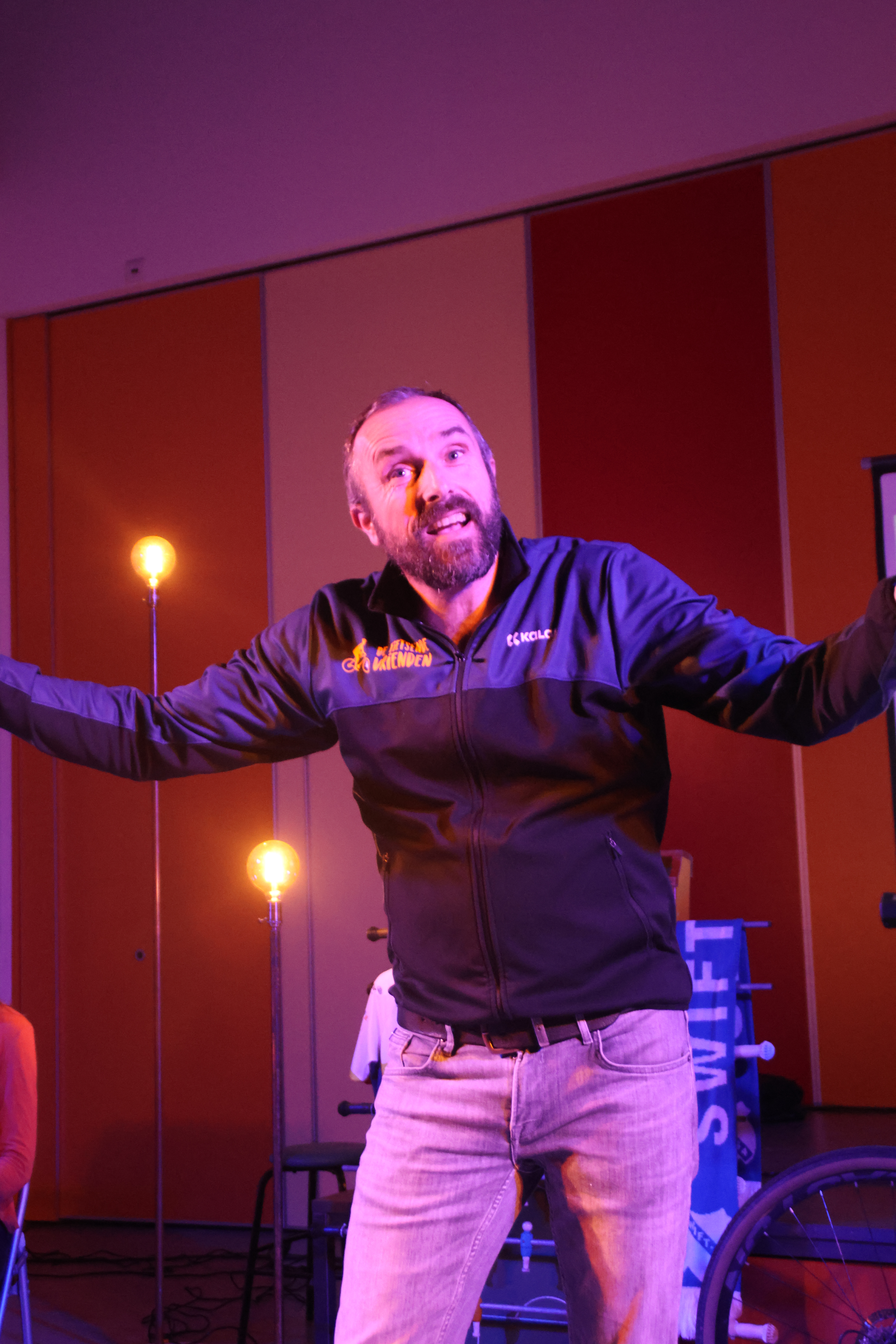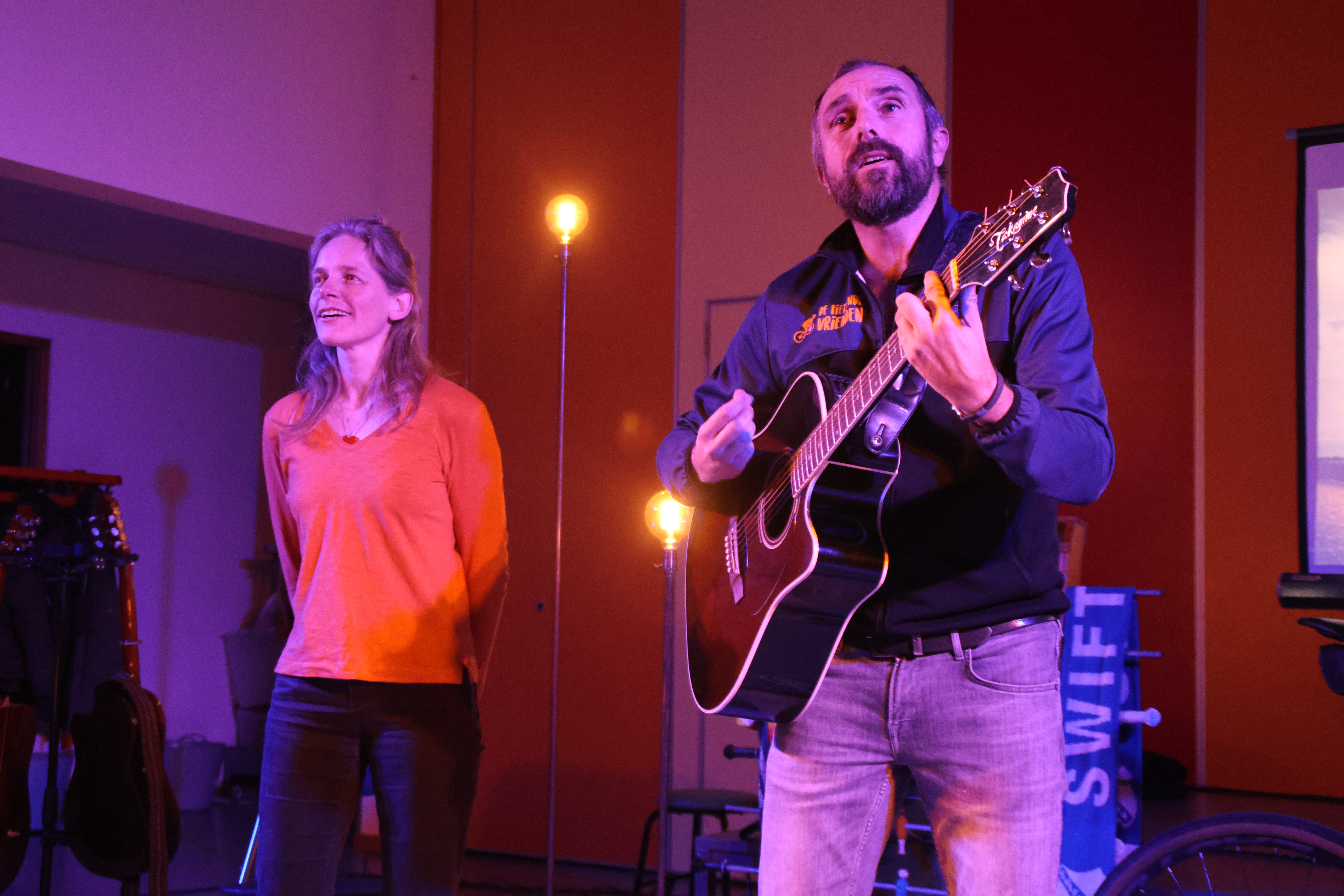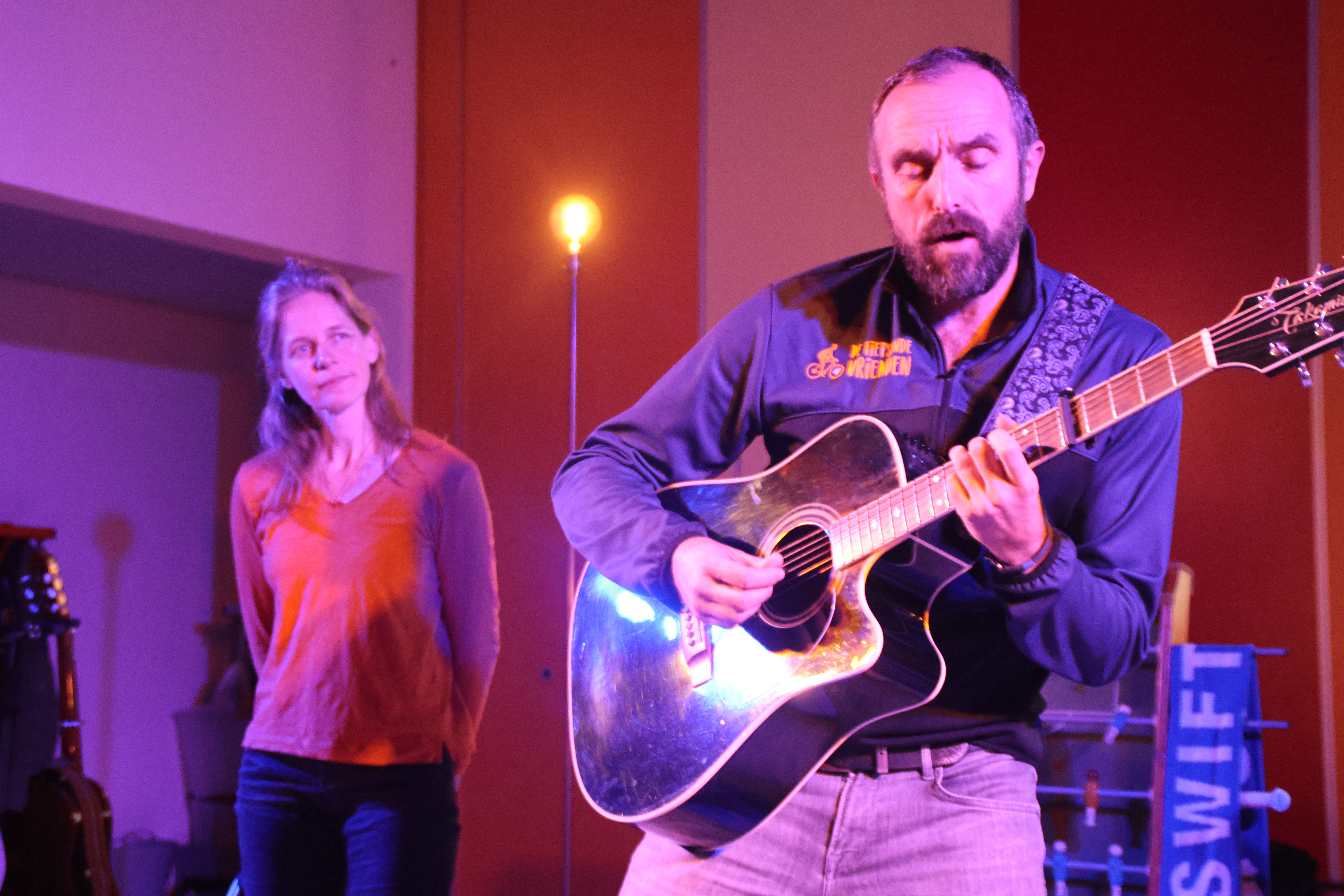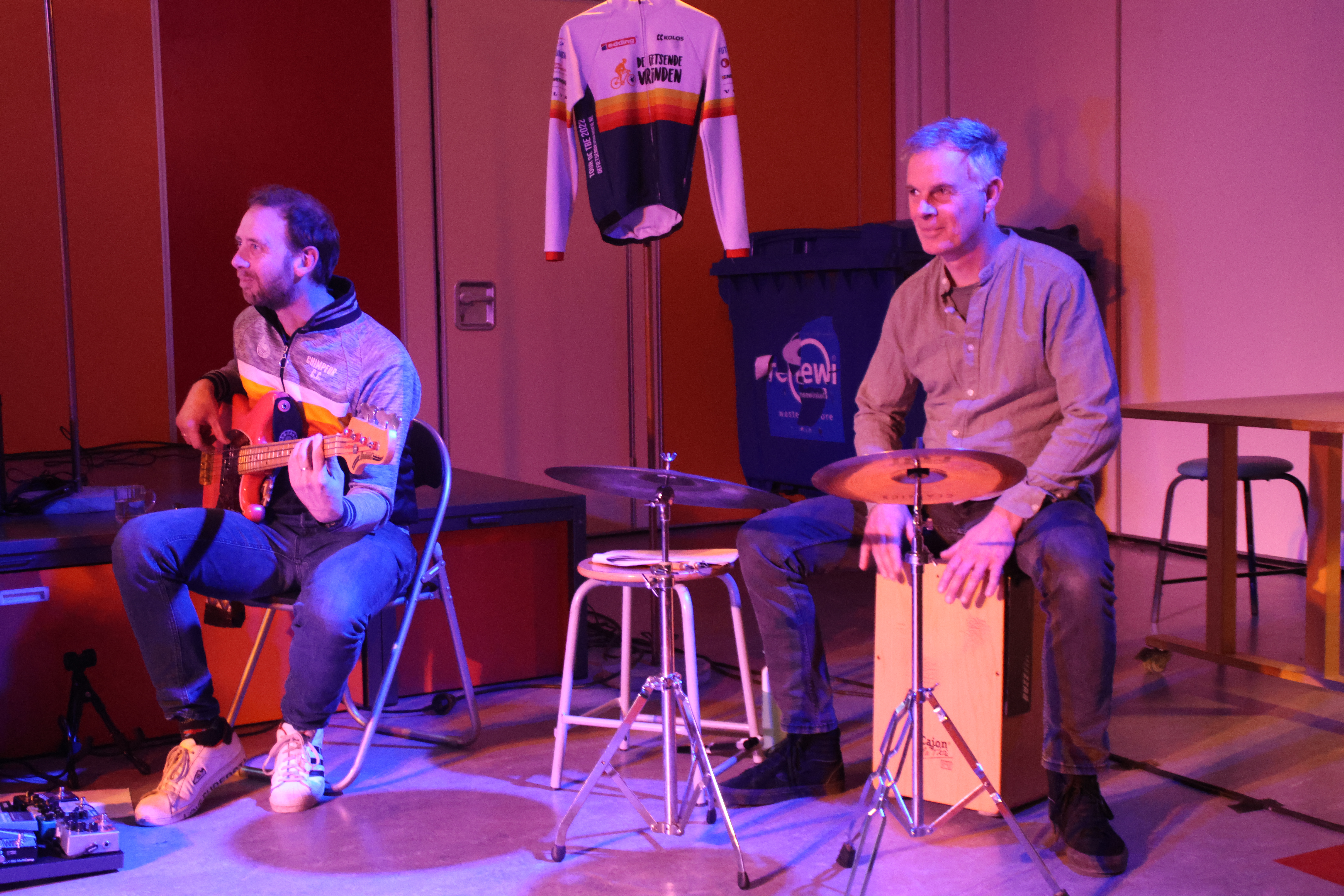 Hoewel onze gewaardeerde ploegleider Age Yska er niet bij kon zijn, hebben we zijn aanwezigheid in gedachten gevierd. Zijn herstel gaat voor, en we wensen hem alle kracht toe. Richard Drenth, een ware vriend op de fiets, nam Age’s rol over met een flair die ons allemaal trots maakte. Verder aanwezig waren naast theatermaker Robert Baarda onze kopman Arjan van Egmond op basgitaar, Hugo Hendrickx op percussie en Linda Evenhuis op gitaar. Zij verzorgde ook de tweede stem tijdens de door Robert gezongen liedjes.