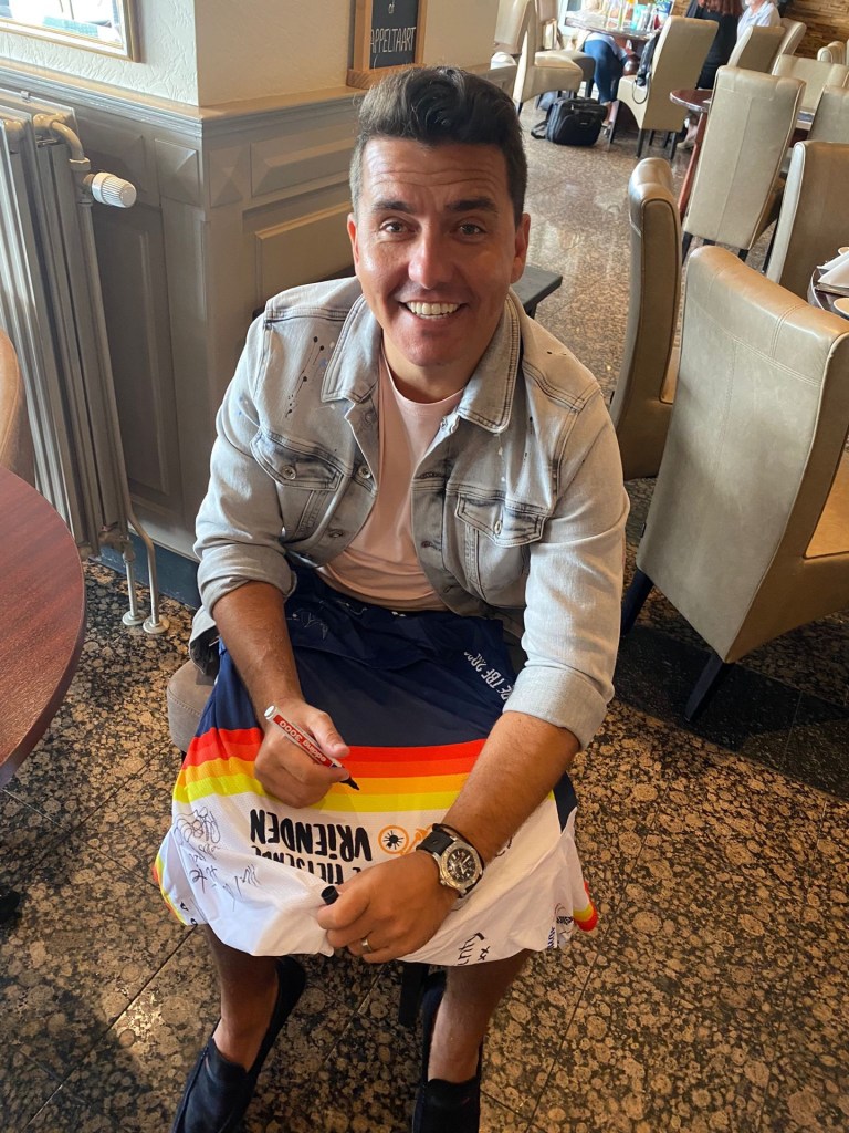 Jan Smit, Rene Froger, Patrick Martens, Quinty Trustfull. Om maar een paar namen te noemen. Allen zetten zij vol overtuiging hun handtekening op het wieldershirt van De Fietsende Vrienden. Reacties die we van hen krijgen zijn: “Wat een superverhaal”, “het ontroert me”, “wat goed dat jullie dit doen”. En binnenkort maken we nog meer namen bekend van BN’ers die middels hun handtekening hun steun betuigen aan ons initiatief.